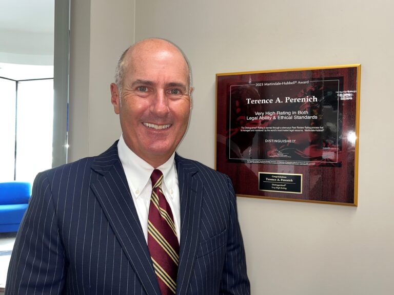 Attorney Terence Perenich received a 2023 Martindale-Hubbell Award for his very high rating in both legal ability and ethical standards.